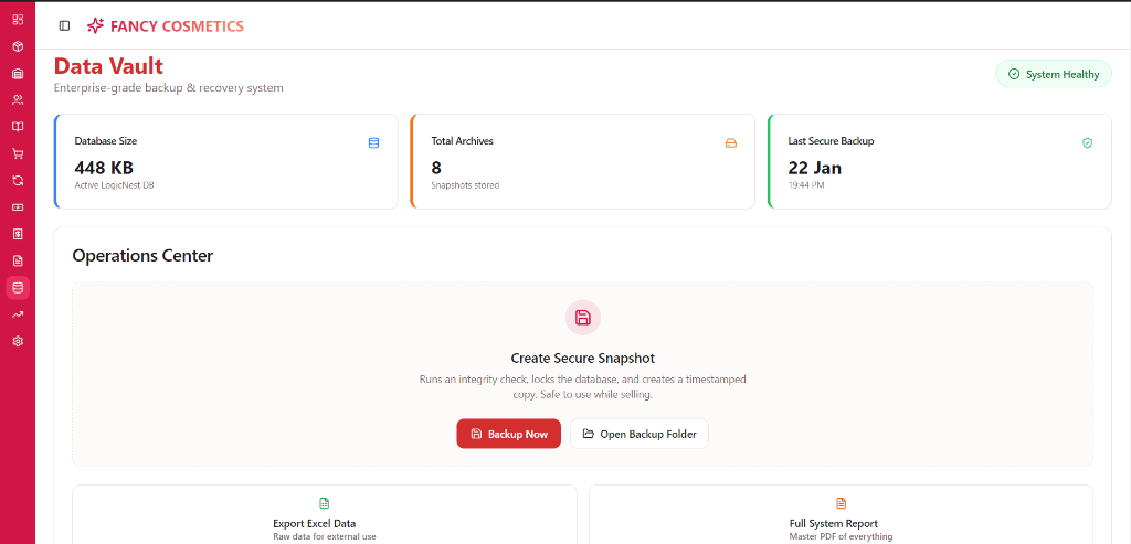 Creates a locked, timestamped copy of your entire database. Safe to use while actively selling.